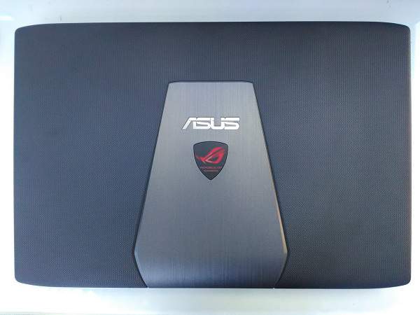 Mặt lưng của máy tính được ASUS thiết kế ở dạng phay xước giả kim loại màu xám, giúp cho chiếc máy trở nên hầm hố và mạnh mẽ hơn. Điểm nhấn của máy chính là những đường gân ở mặt lưng, được đặt cùng lúc logo ASUS và ROG ở giữa.