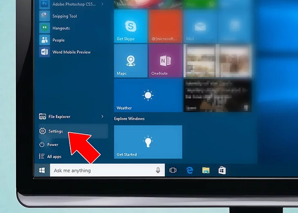 Bước 3 : Nhấp vào biểu tượng hình bánh răng cưa ở phía bên trái cửa sổ Start