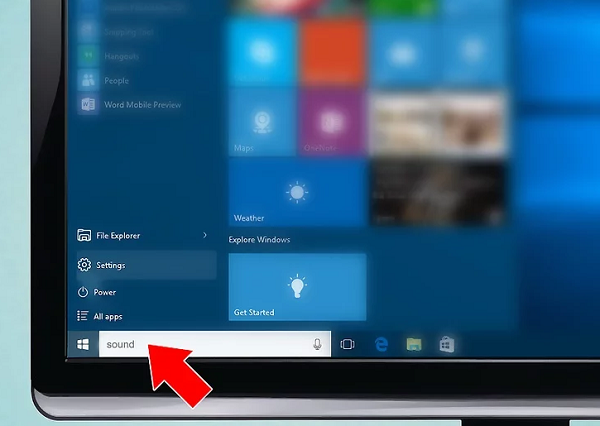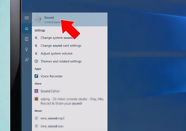 Bước 3 : Nhấp vào mục Sound – ứng dụng hình chiếc loa nằm ở đầu cửa sổ Start