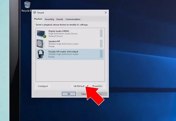 Bước 8 : Tiếp đến thì nhấp vào Set Default thì tai nghe của các bạn sẽ trở thành tùy chọn âm thanh đầu vào mặc định khi được kết nối với máy tính