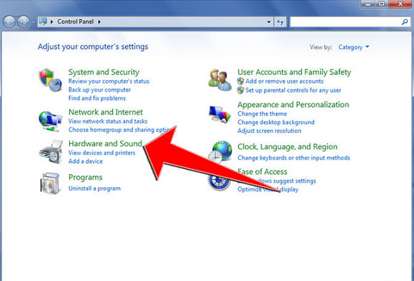 Bước 2 : Sau đó khi khung làm việc của Control Panel xuất hiện lên thì các bạn nhấn chọn vào mục Hardware and Sound rồi tiếp tục chọn Sound