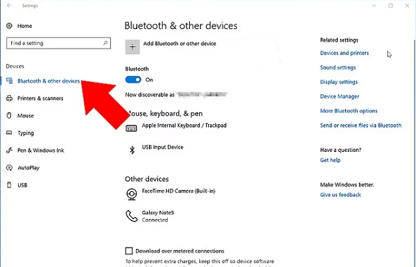 Bước 5 : Nhấp vào Bluetooth & other devices ( Bluetooth & thiết bị khác ) nằm ở phía trên bên trái của cửa sổ Devices