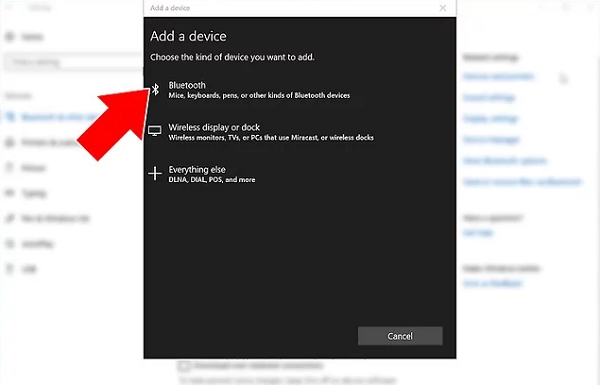 Bước 8 : Nhấp vào Bluetooth ở đầu danh sách hiện ra