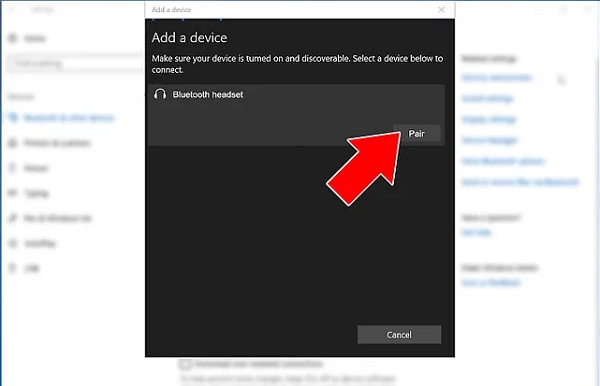 Bước 11 : Nhấn vào mục Pair ở phía dưới tên tai nghe. Tai nghe sẽ bắt đầu được ghép với máy tính. Sau khi kết nối thì tai nghe của các bạn đã có thể được thiết lập ở trong cài đặt của hệ điều hành windows.