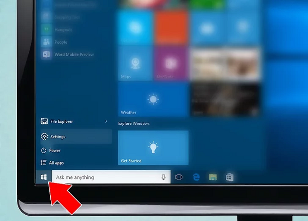 Bước 2 : Nhấp vào biểu tượng windows ở ngay góc dưới bên trái màn hình. Cửa sổ Start sẽ hiện ra.