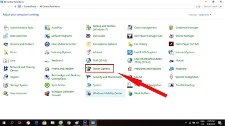 Bước 2 : Bạn chọn vào mục Power Options thì hộp thoại để tùy chỉnh cài đặt sẽ xuất hiện trên màn hình