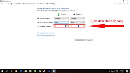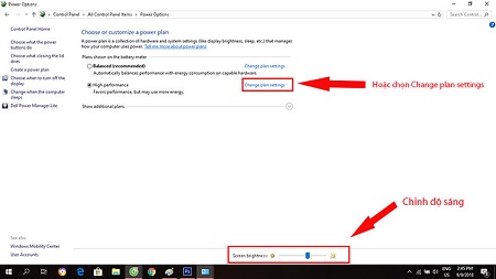 Các bạn click vào biểu tượng của pin ở góc bên phải ở dưới của màn hình máy tính -> sau đó thì chọn Adjust screen brightness Ở tại phần Balanced thì bạn chọn Change plan settings Tại cửa sổ Edit Plan Settings sẽ hiện ra ở màn hình có hai cột : - On Battery : Khi sử dụng pin - Plugged In : Khi sử dụng sạc - Tại mục Adjust Plan Brightness bạn có thể tùy chỉnh độ sáng của màn hình theo như ý của bạn. Khi sử dụng pin thì nên để ở độ sáng ở mức trung bình để có thể tiết kiệm pin.5. Chỉnh độ sáng màn hình bằng chức năng Notification