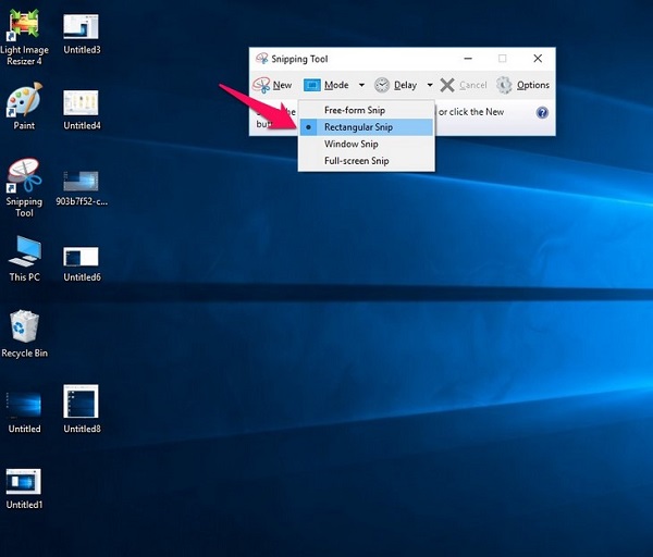 - Rectangular Snip chế độ cắt khung hình theo kiểu có hình chữ nhật