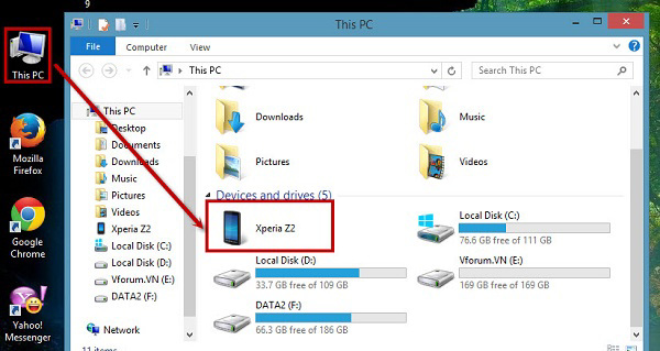 This PC với hệ điều hành win 8 và 10 ) và chọn thiết bị điện thoại đã được kết nối, ví dụ ở đây là điện thoại Sony Xperia