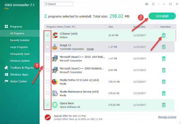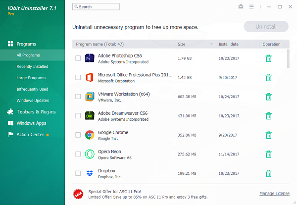 IObit Uninstaller là phần mềm miễn phí không chỉ cho phép người dùng có thể dễ dàng gỡ bỏ những phần mềm đã được cài đặt trên hệ điều hành windows mà còn cho phép quét sâu vào hệ thống của bạn để loại bỏ các dấu vết mà phần mềm để lại như là file rác sinh ra ở trong quá trình sử dụng, những khóa registry trên hệ thống… để giúp cho việc gỡ bỏ phần mềm được triệt để hơn.