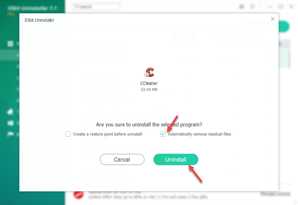 Bước 2 : Các bạn tích chọn vào mục Automatically remove residual files để phần mềm tự động xóa những file dư thừa rồi sau đó nhấn Uninstall