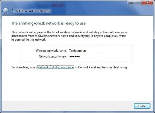 Nếu máy khác muốn kết nối đến máy tính của các bạn thì phải thông qua kết nối wifi này và buộc phải nhập đúng mật khẩu mà bạn quy định ở đây ( tương tự như khi các bạn gia nhập vào một mạng wifi thông thường vậy.