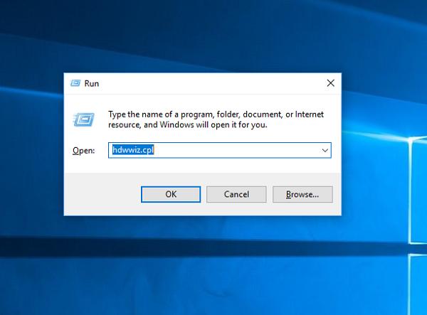 Bước 1: Từ giao diện đang sử dụng thì các bạn nhấn tổ hợp phím Windows + R và sau đó nhập lệnh hdwwiz.cpl rồi tiếp nữa nhấn Enter hoặc OK.