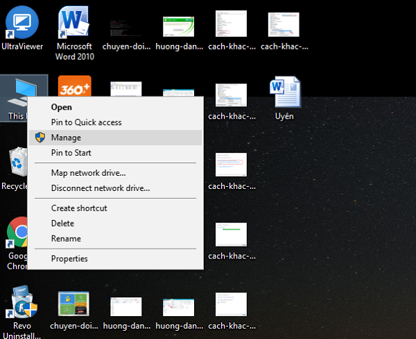 Bước 1 : Các bạn click vào chuột phải vào biểu tượng This PC ( My Computer ) sau đó thì chọn Manage.