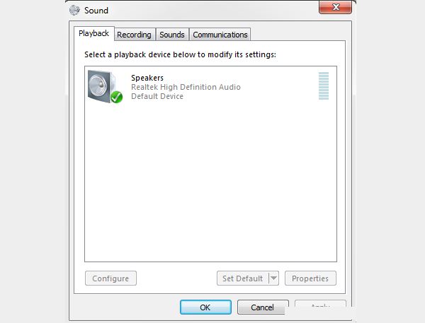 Bạn nhấn chuột phải vào biểu tượng icon loa âm thanh ở trên khay công cụ của máy tính và sau đó chọn mục Playback devices. Đảm bảo rằng có biểu tượng thiết bị âm thanh của các bạn có dấu kiểm màu xanh