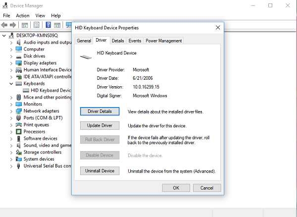 - Xóa driver bị lỗi thông qua Device Manager bằng cách tìm kiếm nó ở trên thanh công cụ windows sau đó thì nhấn đúp chuột phải vào đó chọn vào mục keyboard tiếp đến thì nhấn vào HID keyboard Device và chọn vào mục Driver là tiến hành xóa