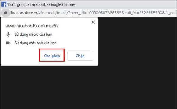 Thông thường lần đầu tiên gọi thoại thì trình duyệt web sẽ hỏi các bạn có cho phép Facebook truy cập vào micro và máy ảnh của các bạn, nếu như vô tình nhấn vào Chặn thì các bạn sẽ không thể gọi được cho người đó đâu nhé.