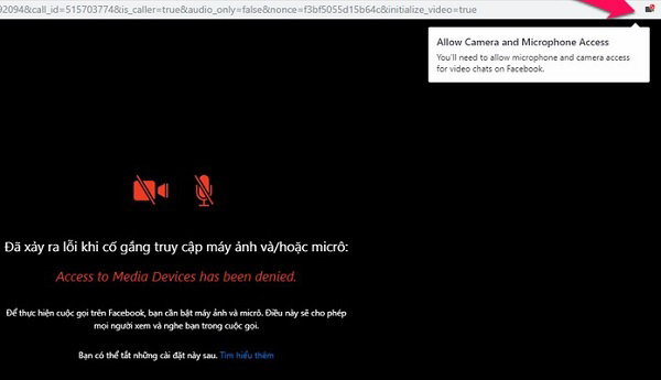 Thông thường lần đầu tiên gọi thoại thì trình duyệt web sẽ hỏi các bạn có cho phép Facebook truy cập vào micro và máy ảnh của các bạn, nếu như vô tình nhấn vào Chặn thì các bạn sẽ không thể gọi được cho người đó đâu nhé.