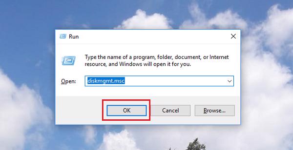 Bước 2 : Trên giao diện sử dụng windows thì các bạn nhấn vào tổ hợp phím Windows + R để mở hộp thoại Run và gõ lệnh diskmgmt.msc rồi nhấn vào OK hoặc Enter