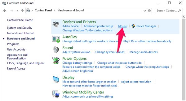 Bước 3: Tiếp theo nhấn vào tùy chọn biểu tượng Mouse ở trong phần Devices and Printers