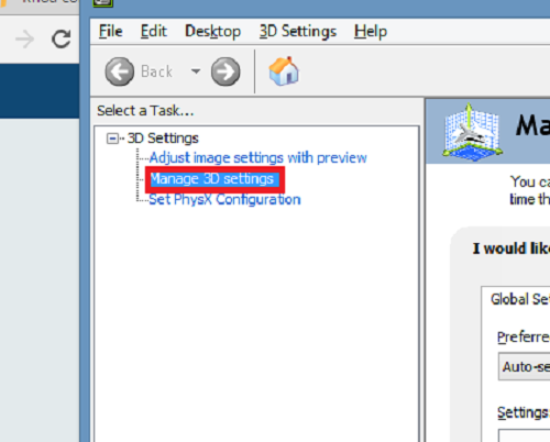 Bước 2 : Tiến đến chọn vào Tab Manager 3D settings