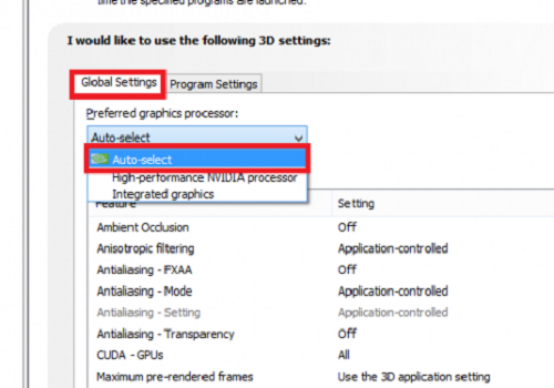 - Use Global settings : Máy tự động lựa chọn loại card màn hình phù hợp cho ứng dụng