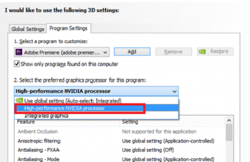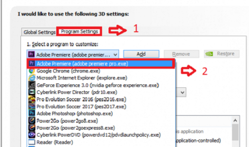 Bước 4 : Bạn chọn tab vào mục Program setting ( bên cạnh Global settings ). Sau đó các bạn lựa chọn ứng dụng cần phải cài đặt ở trong phần Select a program to customize. Nếu như không thấy ứng dụng cần tìm ở trong list ứng dụng thì hãy tìm nó ở trong phần Add nhé.