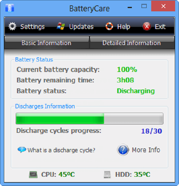 Là một trong những phần mềm được đánh giá rất cao ở trong việc kiểm tra, hiển thị tình trạng pin của máy tính thông qua một giao diện khá thân thiện và trực quan. Battery Care tương thích với những phiên bản hệ điều hành windows bao gồm Windows 7, windows 8.1, windows 10.