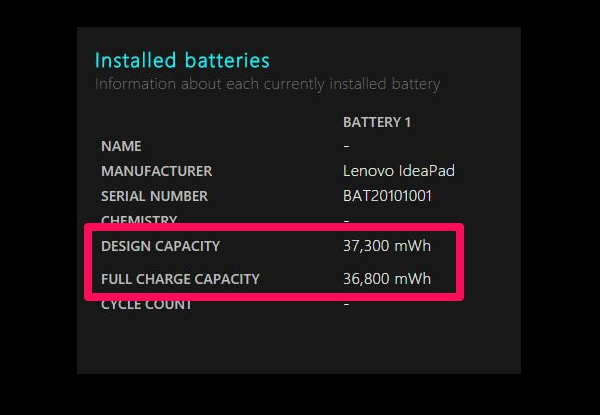 Như vậy nếu khoảng cách chênh lệch về dung lượng giữa 2 chỉ số này càng cao thì pin máy tính xách tay sẽ bị chai càng nhiều và nếu như chênh lệch vượt quá 10.000mAh thì các bạn nên thay pin cho máy tính để đảm bảo hiệu suất công việc.