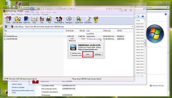 Nhấn đôi vào file vừa mới tải về rồi sau đó nhấp đôi tiếp vào mục HWiNFO64.exe. Hộp thư thoại mới xuất hiện và tiếp tục chọn vào Run
