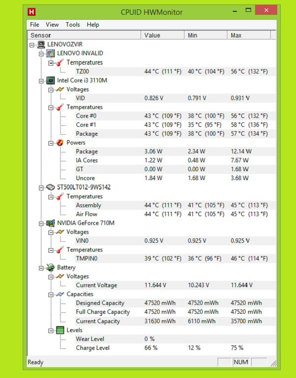 Là phần mềm hiển thị rất đầy đủ những thông tin của máy tính bao gồm như là mainboard, CPU, card đồ họa,… giúp cho các bạn có cái nhìn tổng quan hơn về cấu hình máy tính laptop của bạn. Bên cạnh đó thì HWMonitor còn cho phép hiển thị tình trạng pin của laptop.