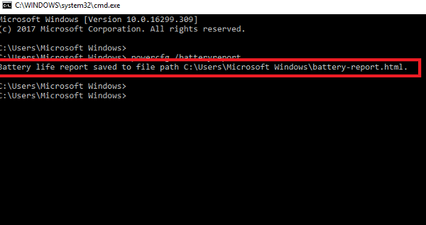 Bước 2 : Khi xuất hiện một cửa sổ nhỏ màu đen thì các bạn dòng lệnh powercfg /batteryreport rồi nhấn Enter. Nếu bạn thấy xuất hiện dòng Battery life report saved to C:...có nghĩa là đã thành công bước đầu