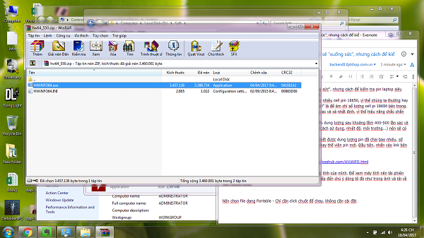 Lưu ý là tải phần mềm kiểm tra pin laptop với phiên bản 32 bit hoặc là 64 bit phù hợp với máy tính của mình. Để xem máy tính xách tay của bạn nên tải phiên bản nào : Chuột phải ở trên My Computer -> Properties -> Tiếp đến chú ý dòng tô đỏ như trong ảnh và tải về bản tương xứng