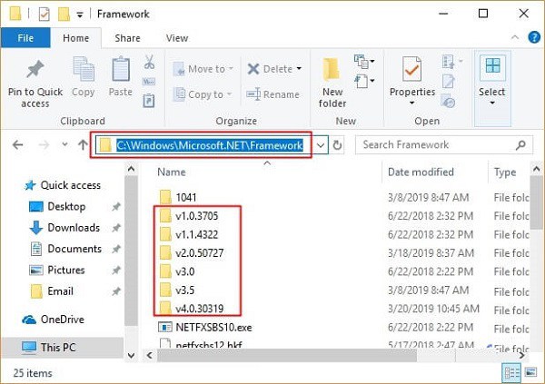 Kiểm tra phiên bản .net Framework từ File Explorer với hệ điều hành windows 10