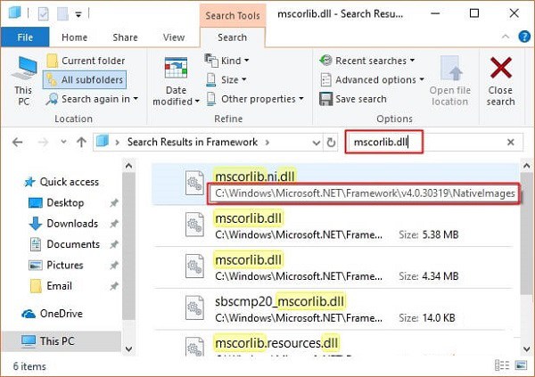 Bước 3 : Để kiểm tra xem các bạn đang được sử dụng phiên bản nào, thì hãy nhập mscorlib.dll vào ô tìm kiếm ở góc phía trên bên phải. Kết quả hiện ra ở thư mục nào đầu tiên thì các bạn đang sử dụng phiên bản đó.