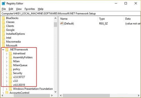 Kiểm tra net framework trong Registry với hệ điều hành windows 10