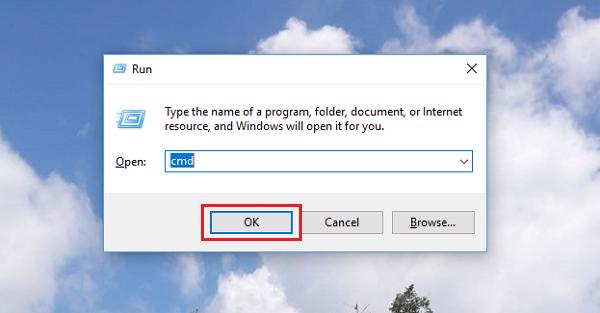 Bước 1 : Đầu tiên các bạn sẽ sử dụng tổ hợp phím windows + R rồi sau đó gõ lệnh cmd và nhấn vào Ok hoặc là Enter