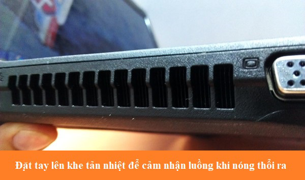 Tiếp theo, các bạn sẽ đặt tay vào hệ thống thoát nhiệt của mỗi chiếc máy tính xách tay để thoát nhiệt cho CPU, đây là các khe hở nằm dưới hoặc là bên hông máy tính. Khi đó người dùng sẽ thấy có một luồng không khí nóng thổi ra đều đều thì lúc đó quạt hoạt động ổn và bình thường. Còn nếu thấy không có luồng không khí nào thoát ra hoặc là ít thì chứng tỏ quạt laptop thoát nhiệt là có vấn đề và các bạn cần phải tháo máy tính xách tay của mình ra để kiểm tra.