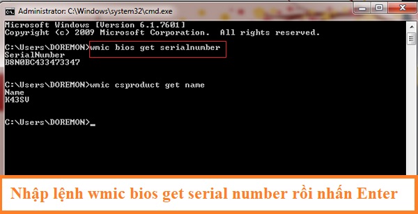 Ngay lúc này thì bạn đã có thể thấy được số serial number rồi hiển thị trên cửa sổ.