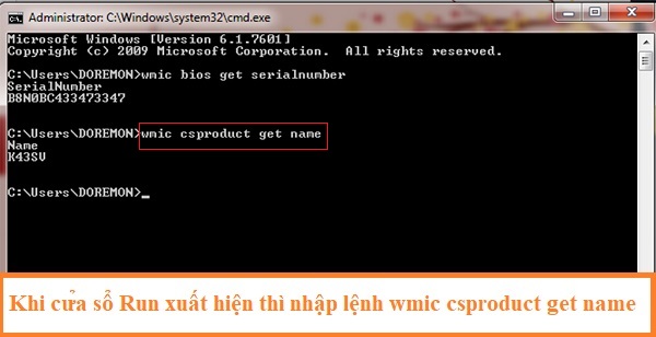 wmic csproduct get name ( hoặc là bạn cũng có thể cop rồi dán cho nhanh chóng ) và cuối cùng nhấn