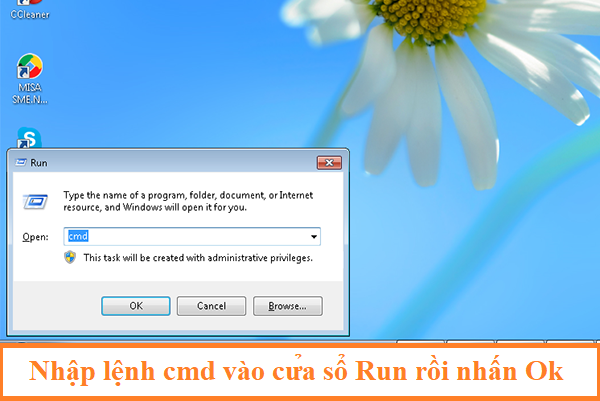 Bước 2 : Sau khi màn hình máy tính hiện ra cửa sổ Run thì các bạn nhập vào đó