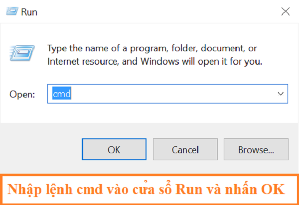 lệnh cmd rồi tiếp theo nhấn vào phím