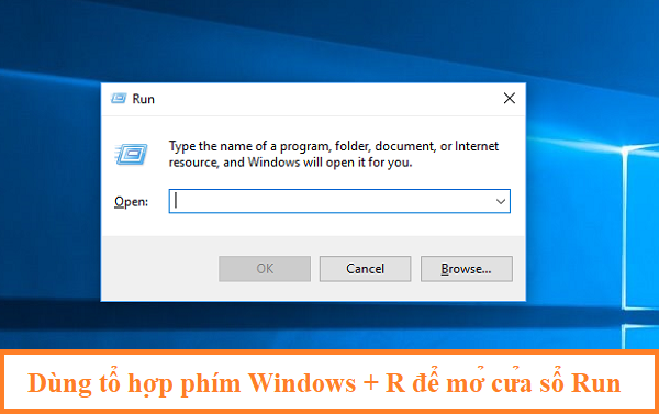 Bước 2 : Sau đó khi màn hình xuất hiện cửa sổ của công cụ Run thì nhập vào đó