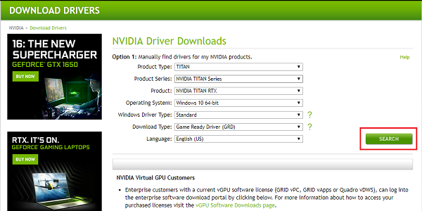 Bước 1 : Vào trang chủ của nhà sản xuất Nvidia