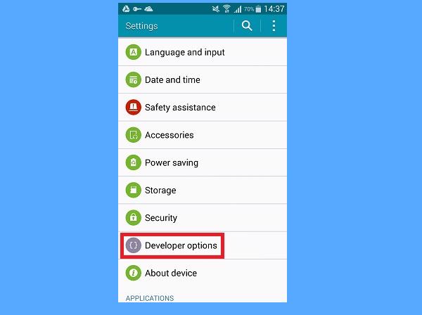Bước 4: Nếu các bạn đang sử dụng phiên bản trước của hệ điều hành Android, rồi sau đó bạn sẽ tìm thấy được tính năng tương tự dưới cái tên Phát triển ở trong Applications.