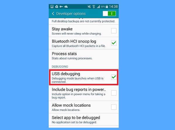 Bước 2: Bây giờ, các bạn tích vào ô USB Debugging tùy chọn để đảm bảo rằng các bạn có thể kết nối điện thoại như lưu trữ USB.
