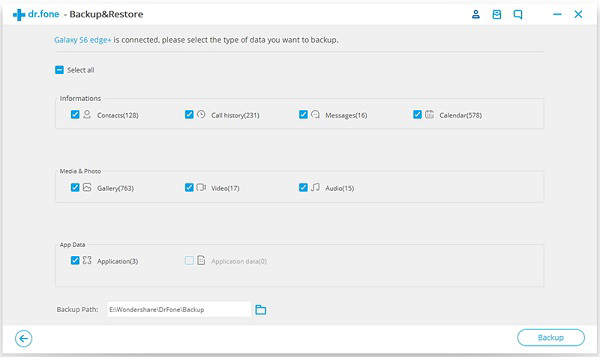 Dr.fone sẽ cho phép sao lưu dữ liệu Sam sung vào máy tính của bạn theo một cách miễn phí nhất. Nó là một công cụ tuyệt vời và có giao diện kiểu dáng đẹp. Không chỉ các bạn sẽ có thể chuyển những tập tin của bạn một cách lossless, nhưng cũng có thể chọn lọc được những loại dữ liệu các bạn muốn sao lưu.