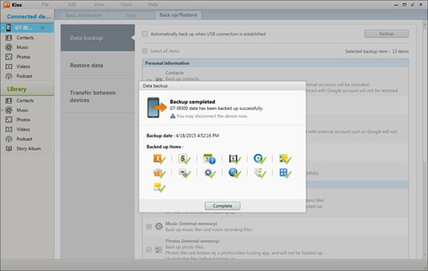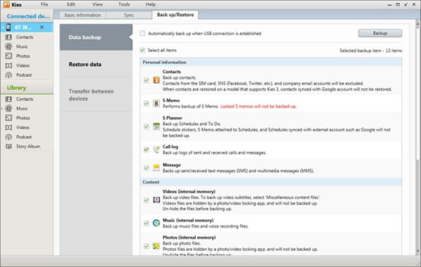 Sao lưu dữ liệu Samsung vào máy tính với Samsung Kies