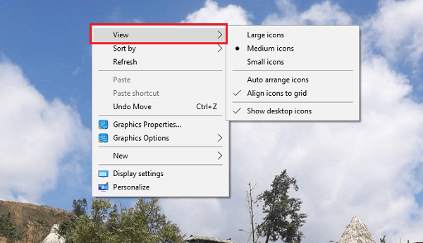 Bước 1: Nhấn chuột phải vào màn hình Desktop rồi chọn mục View