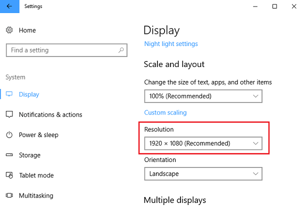 Mục Resolution giúp cho các bạn chỉnh sửa độ phân giải của màn hình máy tính. Khi độ phân giải màn hình bị thay đổi cũng có nghĩa rằng những nội dung được hiển thị ở trên màn hình máy tính cũng được thay đổi về độ sắc nét, kích thước to nhỏ. Vì thế các bạn nên thiết lập độ phân giải của màn hình về kích thước phù hợp so với độ phân giải của màn hình. Độ phân giải phù hợp nhất sẽ có chữ Recommended ở bên cạnh.
